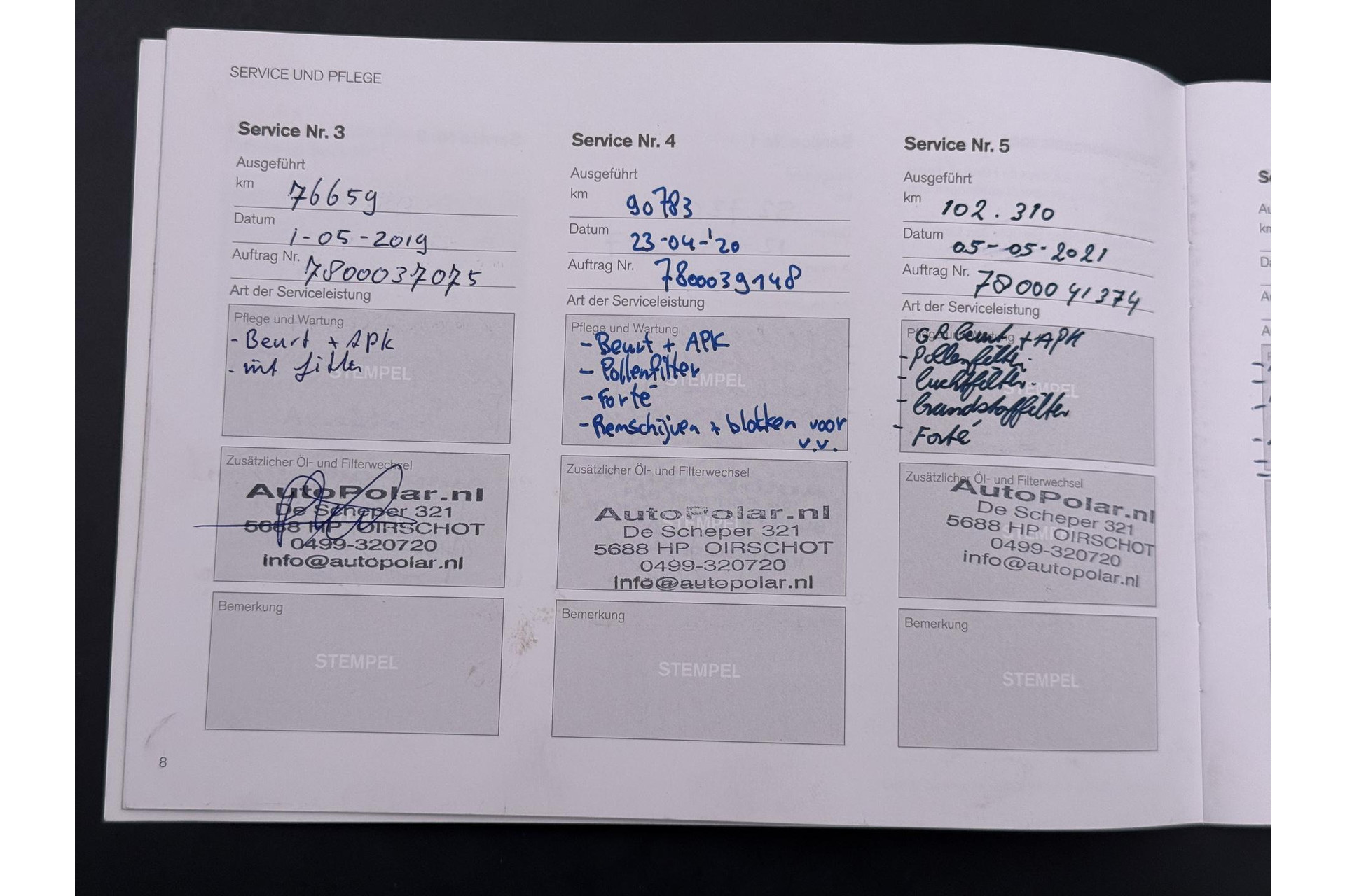 - Onderhoudsboekje (fysiek)
